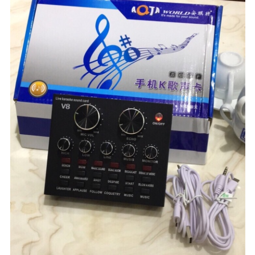 Sound card thu âm V8 là sản phẩm card âm thanh tương thích với nhiều thiết bị như smartphone, laptop, pc, máy tính bảng. Với tính năng làm méo giọng hát, thành giọng trẻ em, người già, Khả năng chèn các hiệu ứng âm thanh vào các đoạn thu như tiếng vỗ tay, tiếng hò reo, nhạc cổ vũ, tiếng chim kêu... với 12 hiệu ứng âm thanh, sẽ đem lại cho bạn trải nghiệm thu âm vô cùng thú vị.