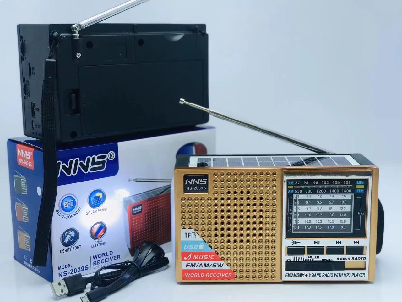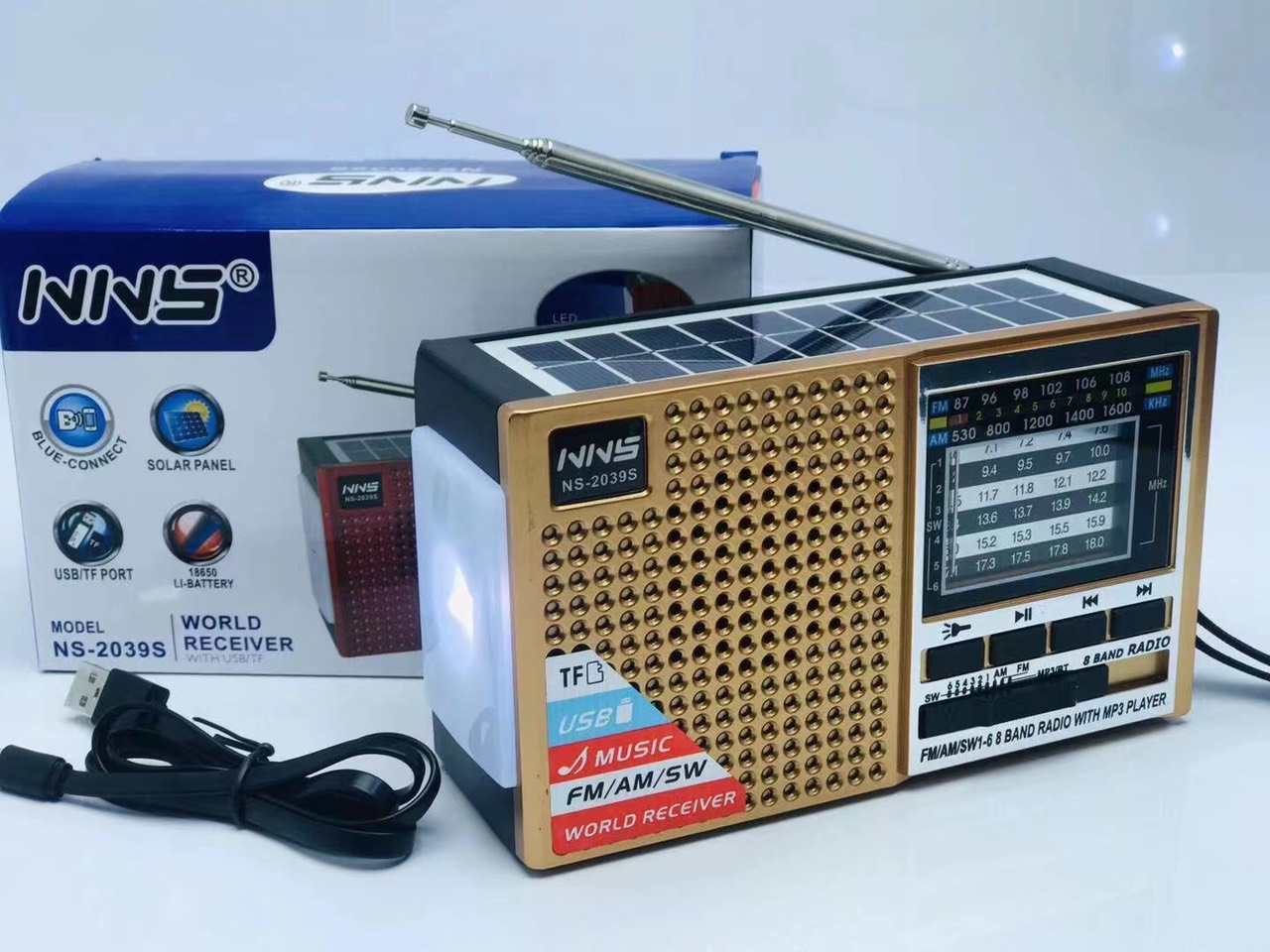 Loa Bluetooth FM/USB/SD NNS NS-2039S (đèn LED + Pin năng lượng mặt trời)