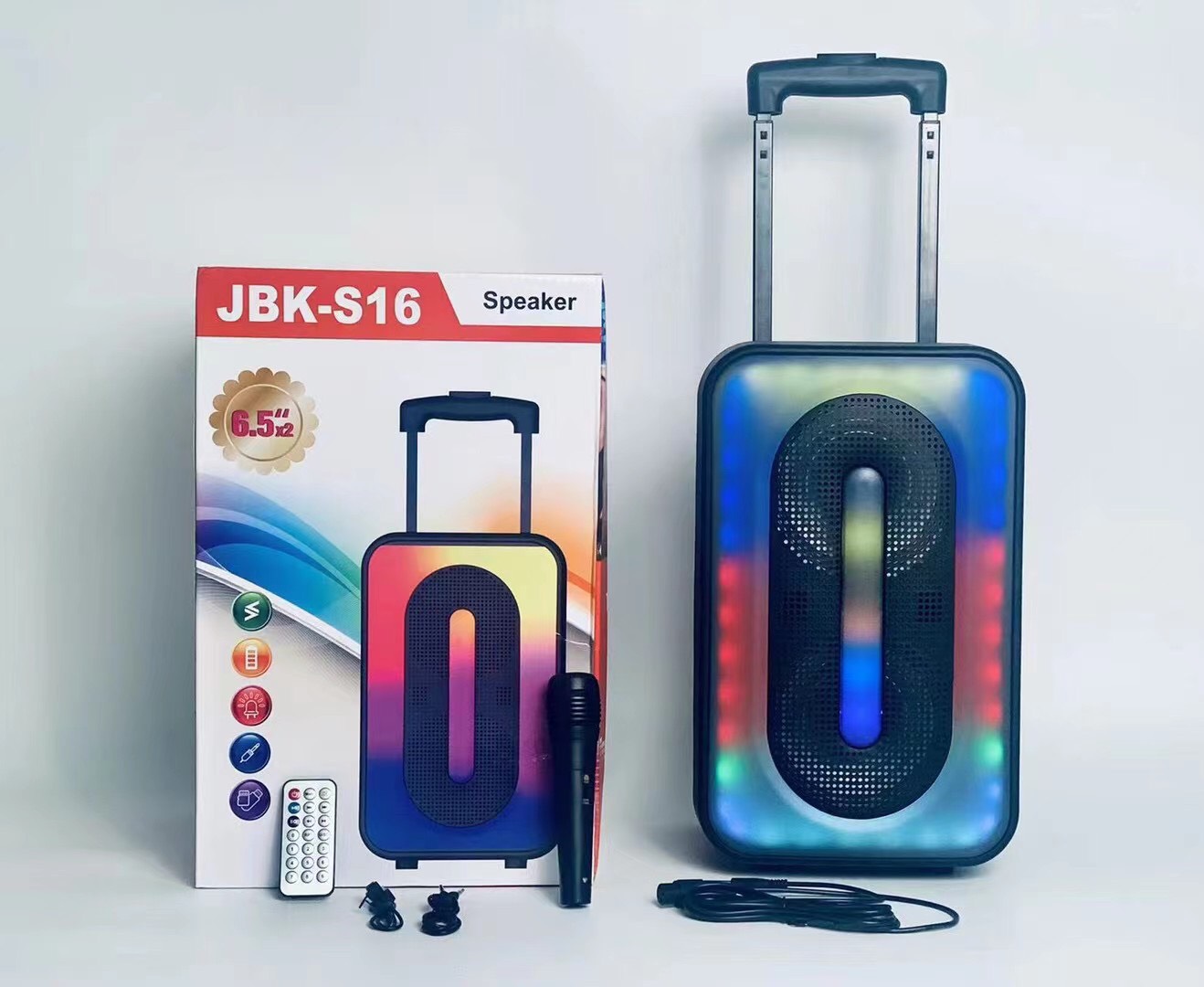 Loa Kéo Di Động Karaoke JBK-S16 (Bass 6.5x2, 1 Micro có dây)