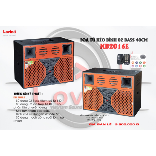LOA TỦ KÉO BÌNH 02 BASS 40CM-KB2016E