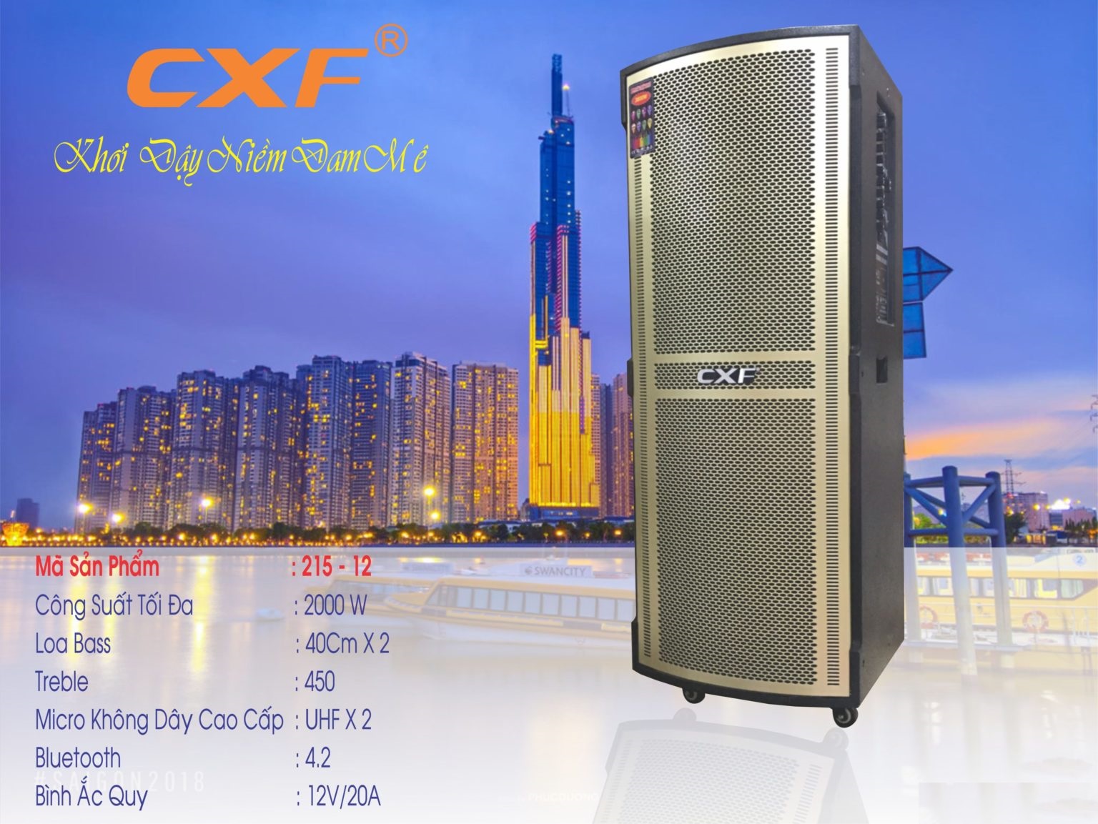 Loa Kéo Di Động CXF GL-215-12 (Bass đôi 4 tấc, 2 Micro)