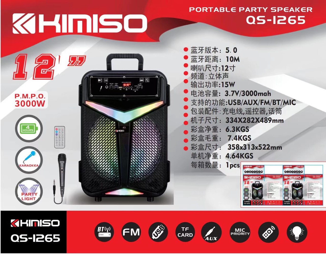Loa Kéo Di Động KIMISO QS-1265 (Bass 12", 1 Micro có dây)