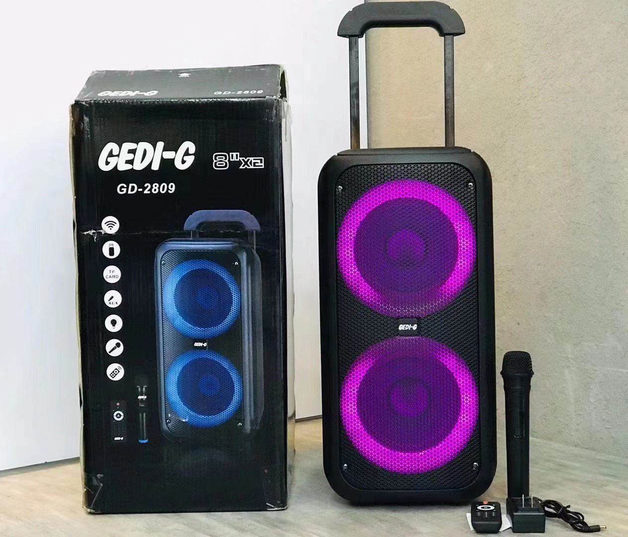Loa Kéo Di Dộng GEDI-G EG-2809 (Bass đôi 8"x2, 1 Micro không dây)