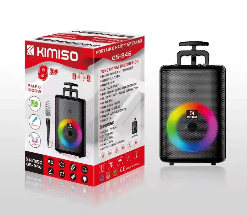 Loa Kéo Di Động Karaoke KIMISO QS-846 (Bass 8", 1 Micro có dây)