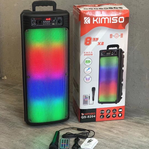 Loa Kéo Di Động Karaoke KIMISO QS-8204 (Bass đôi 8x2, 1 Micro có dây)