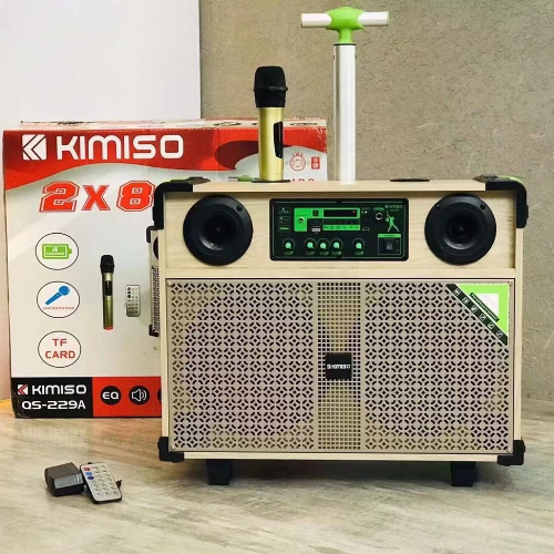 Loa Kéo Di Động Karaoke KIMISO QS-229A (Bass đôi 8x2, 1 Micro Không Dây)