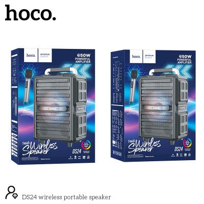 • Chất lượng âm thanh tuyệt vời     • Nhiều chế độ phát lại     • Micrô không dây kép HD     • Pin dung lượng lớn     • Thời gian phát lại dài     • Đèn LED giao hưởng     • Không dây, Chức năng Karaoke & Cổng cắm Guitar    • Loa lớn 50W RMS   • Hỗ trợ thẻ SD, đầu vào USB     • Thiết kế Xe đẩy Du lịch     Loa không dây di động Hoco DS24 với micrô và bộ khuếch đại
