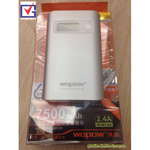 Pin dự phòng wopow 7500 mAh PD603 hiển thị LCD